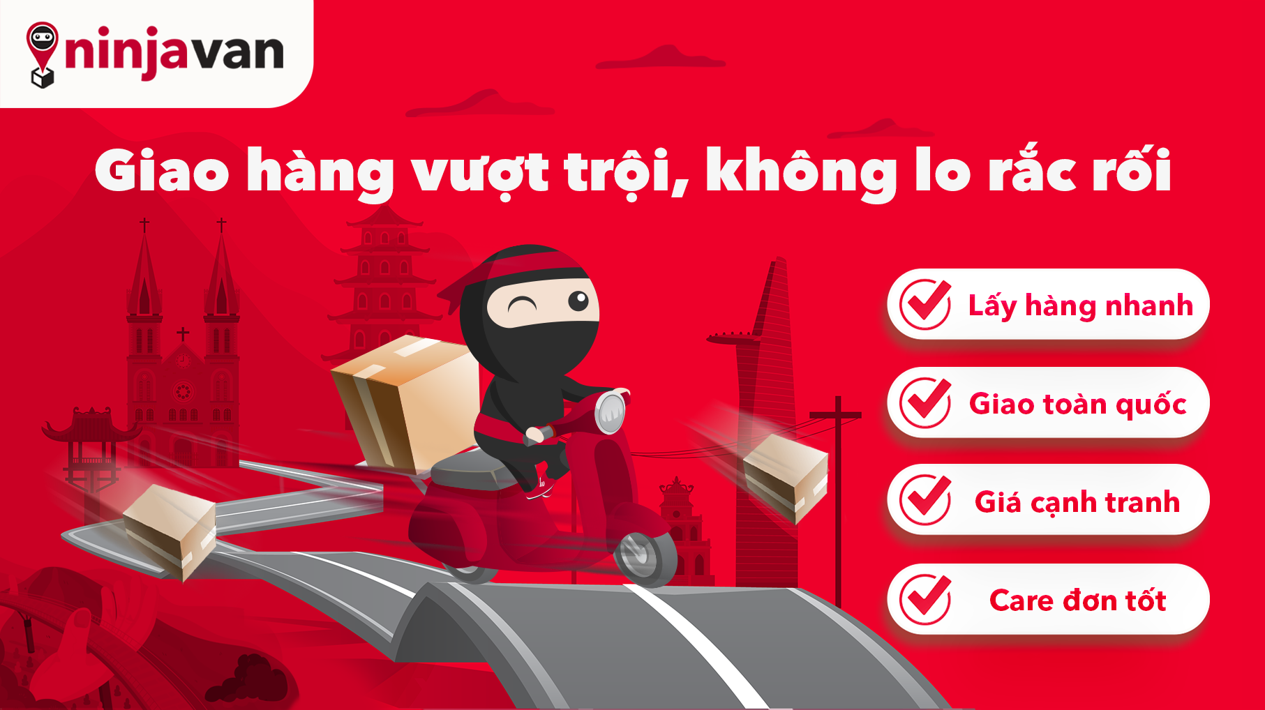 Dù bạn ở bất kỳ nơi đâu, vào bất kỳ thời điểm nào, chỉ cần bạn đang có nhu cầu muốn vận chuyển hàng hóa thì Ninja Van sẽ có mặt ngay lập tự để hỗ trợ bạn. Với Ninja Van việc vận chuyển đồ chưa bao giờ lại dễ dàng và nhanh chóng như vậy.